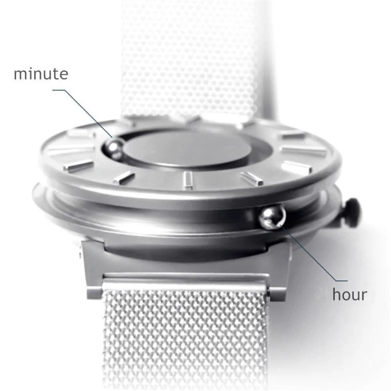 Um relógio que parece e funciona diferente de qualquer outro. Veja e sinta o tempo passar como nunca antes graças à nossa revolucionária tecnologia magnética. Único, elegante e luxuoso tudo em um!